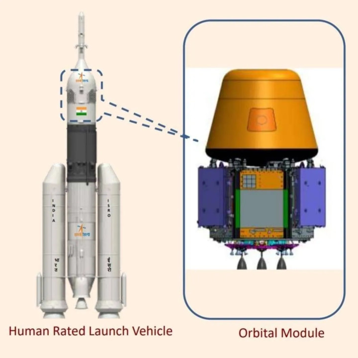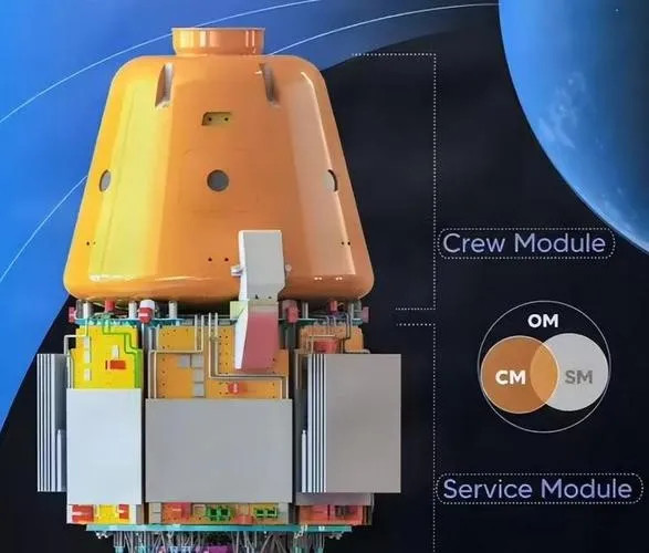 那就是印度飞船主要舱段构成,包含了乘员舱和服务舱,对接时统称轨道舱,人数可以坐上3人,其飞船的质量为7.8吨(包括服务舱),能够实现独立在轨飞行7天,建立在这个配置上。
